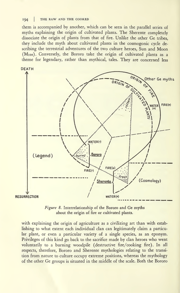 This is all rough and ready (indeed, I completed the whole process on my phone just as a quick proof-of-concept experiment, riding home on a busy commuter train). The results are more general in nature than the interpretations offered by Lévi-Strauss. Yet, the final suggestions (shown in bold, above) of what ‘the mathematical formalization helps us see’ strikes me as rather promising. What is being revealed are the deeper structures of the narrative, rather than the ins and outs of the story. Evidently, it captures the overarching axis, death-rebirth, as we seen in p.194 of The Raw and the Cooked. (Of course, what needs isolating is the operation of the symbolic maths from what the LLM already ‘knows’ from its massive training). Nonetheless, the ability to isolate forms within a text is significant.