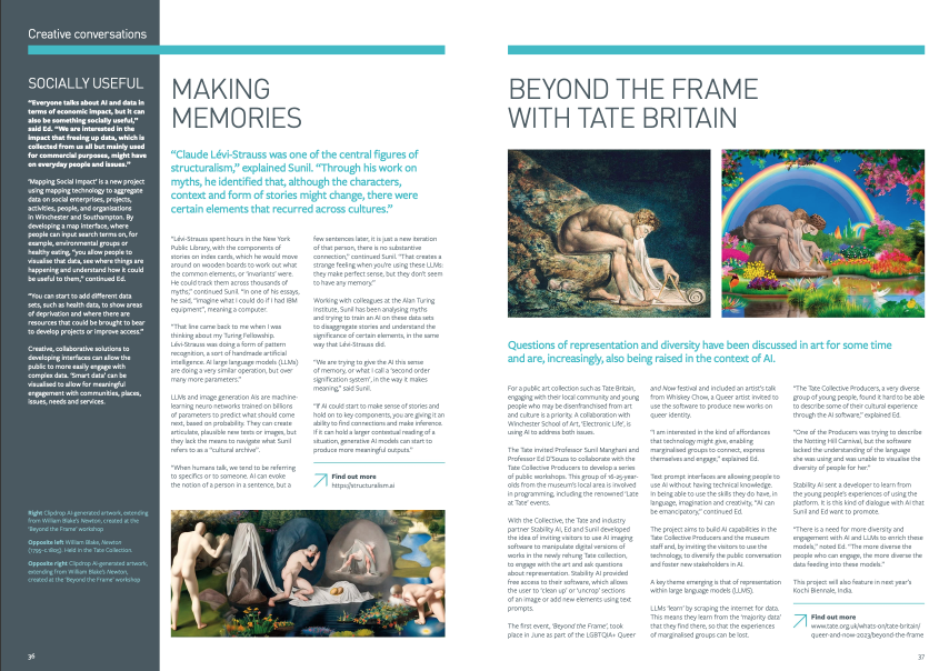 An introduction to the project appears in ‘The Art of Artificial Intelligence’, Reaction [print version] (Research & Enterprise Magazine of University of Southampton, Issue 24, Summer 2023).